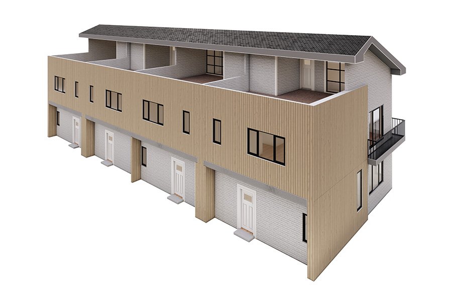 Edificio residencial completamente nuevo con diseños modernos de dos pisos.
